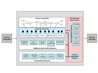 But the BSN architecture is more than an SOA. The BSN must automate the entire life cycle processes of business and infrastructure service delivery and should do this with minimal human intervention. To do this the SOA needs to be complemented with an Operational Support System, a comprehensive management environment that controls the supply/demand of resources to services.