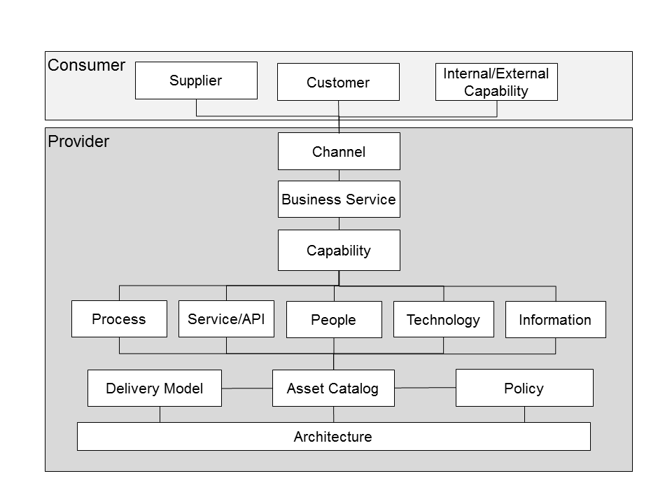 While Capability is a widely used concept, notwithstanding some significant divergence of definition, the missing link is the realization of the Capability. In our work we use the Business Service concept – which delivers the capability in a context free manner. It’s extraordinary that our business vocabulary doesn’t include the formal Business Service concept in the same way that we are able to talk unequivocally about Business Process and know we will be understood.